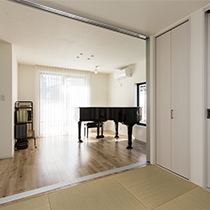 グランドピアノが置けるお母さまの洋室。間仕切りを開けることで広々と使えます。